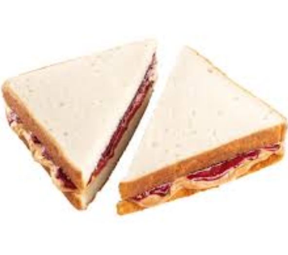 - peanut butter and jam/jelly sandwich, röviden: PB&J (pí-bí-and-dzséj) -szendvicskenyér mogyoróvajjal és lekvárral megkenve